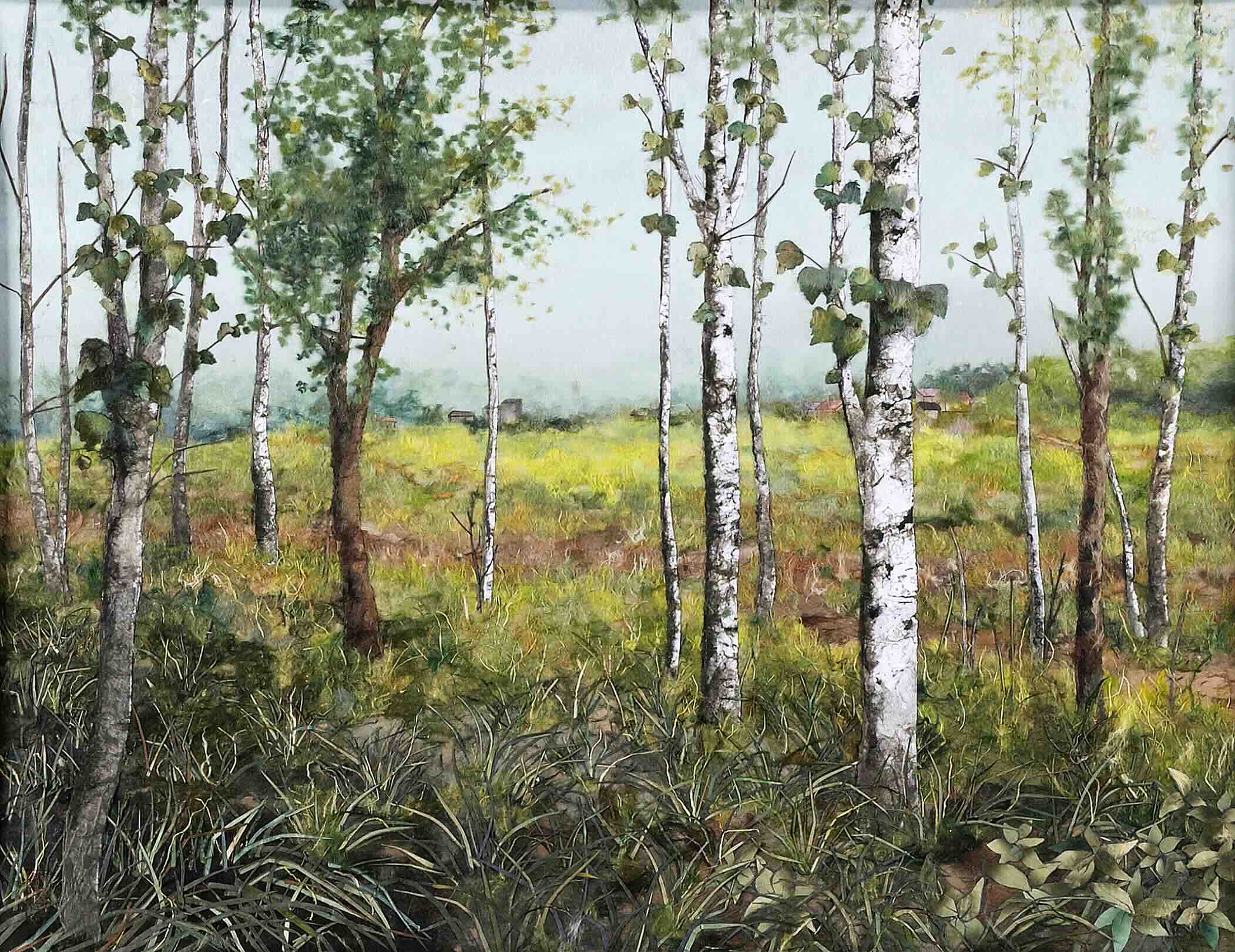 津島会員の”方形”は抽象画でありながら心にじわっと迫る秀作でした。元々津島会員は水彩の風景画が素晴らしい作家でしたが、ある時期から抽象画を出展される様になった作家です。
