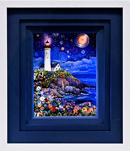 1999年に開高悦子先生が主宰の3Dピクチャーカリフォルニア会と出会い、以来半立体絵に魅了されて、更に近年は同じペーパーアートのペーパークイリングとフランス額装を作品に投入することでよりオリジナリティーのある作品作りを目指しております。