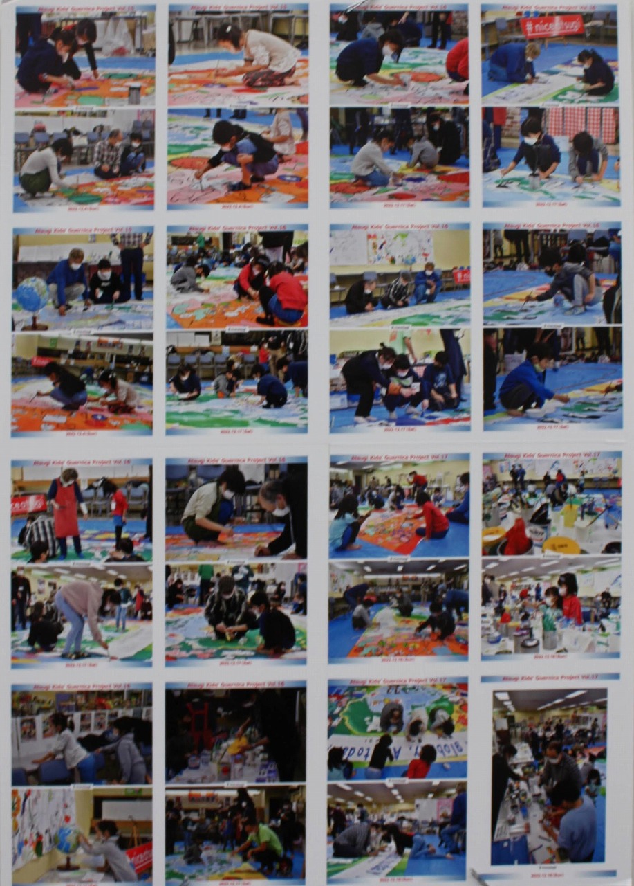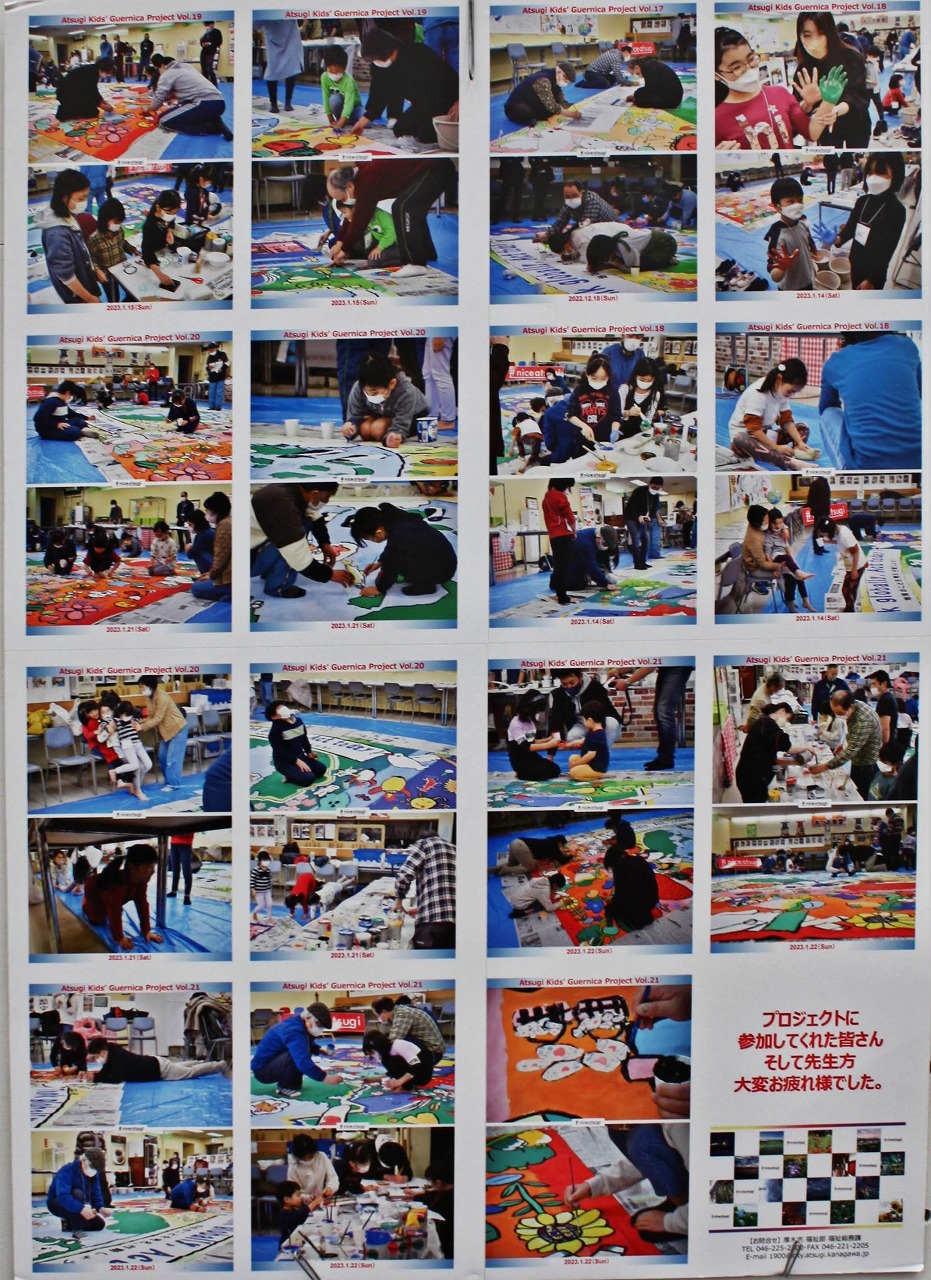 2022年6月にウクライナの子どもたちが制作したキッズゲルニカを展示したことがきっかけとなり、厚木市内の芸術家の皆さんと子どもたち(幼稚園児から高校生までの約30人)が、6か月に及ぶ全22回の制作活動を経て2023年1月にキッズゲルニカを完成させました。